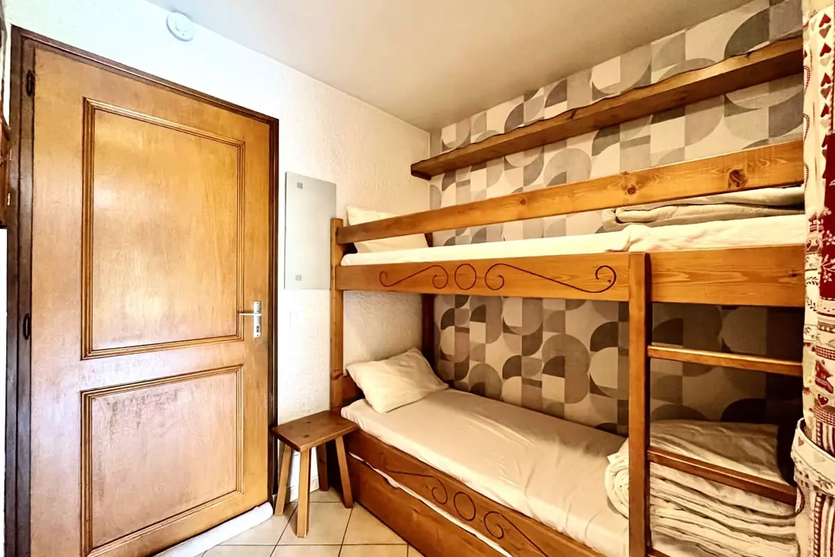Mit einer Fläche von 25 m² bietet es Platz für bis zu 4 Personen. Es verfügt über einen Schlafbereich mit Etagenbett, eine voll ausgestattete Küche zur Zubereitung Ihrer Mahlzeiten sowie ein Duschbad. Das Wohnzimmer verfügt über ein Schlafsofa, ideal zum Entspannen nach einem erlebnisreichen Tag.