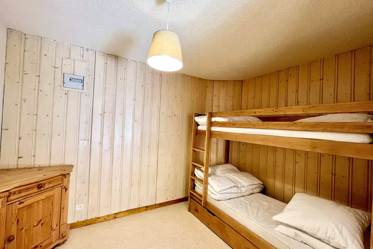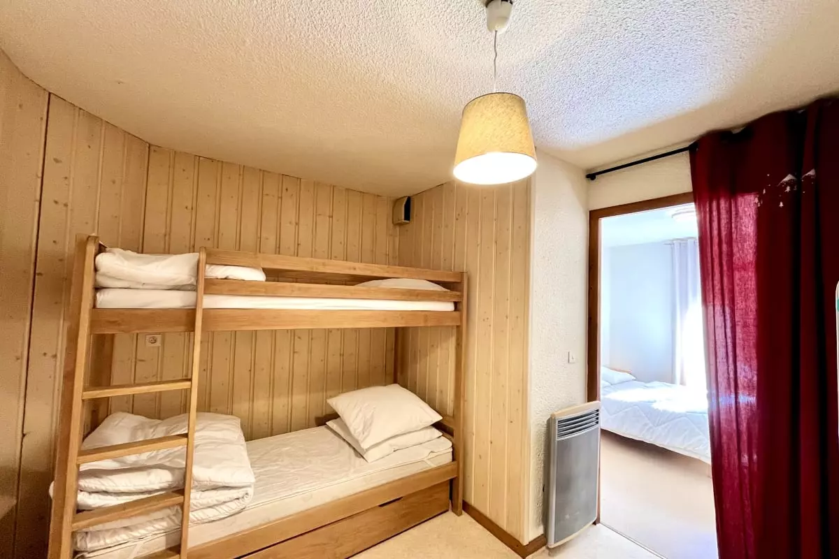 Mit einer Wohnfläche von 42 m² bietet es Platz für bis zu 5 Personen. Es verfügt über ein Schlafzimmer mit einem Doppelbett (140 x 190 cm) und ein weiteres Schlafzimmer mit einem Etagenbett (90 x 190 cm), wobei ein drittes Bett in einer Ausziehschublade integriert ist. Die voll ausgestattete Küche macht die Zubereitung von Mahlzeiten zum Kinderspiel. Das Wohnzimmer lädt zum Entspannen nach einem anstrengenden Tag ein, und das Badezimmer bietet jeglichen Komfort.