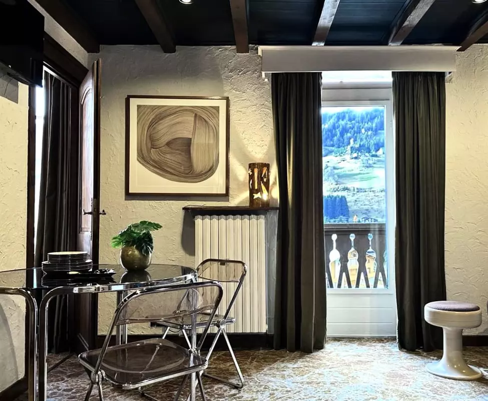 Ihnen steht außerdem ein BALKON mit einem Tisch und zwei Sesseln zur Verfügung, von dem aus Sie einen außergewöhnlichen Panoramablick auf die Täler genießen können.