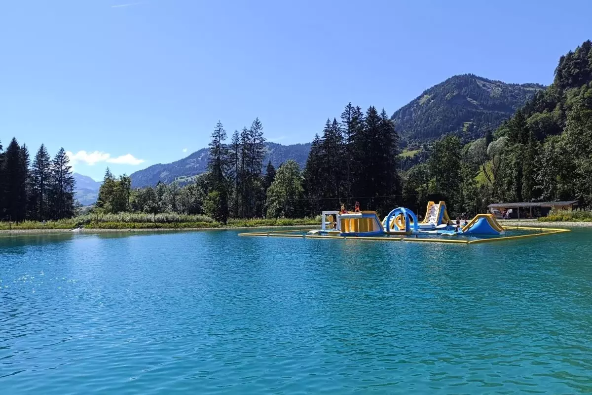 - Freizeitbereich am Ortsausgang von Praz mit künstlichem See;